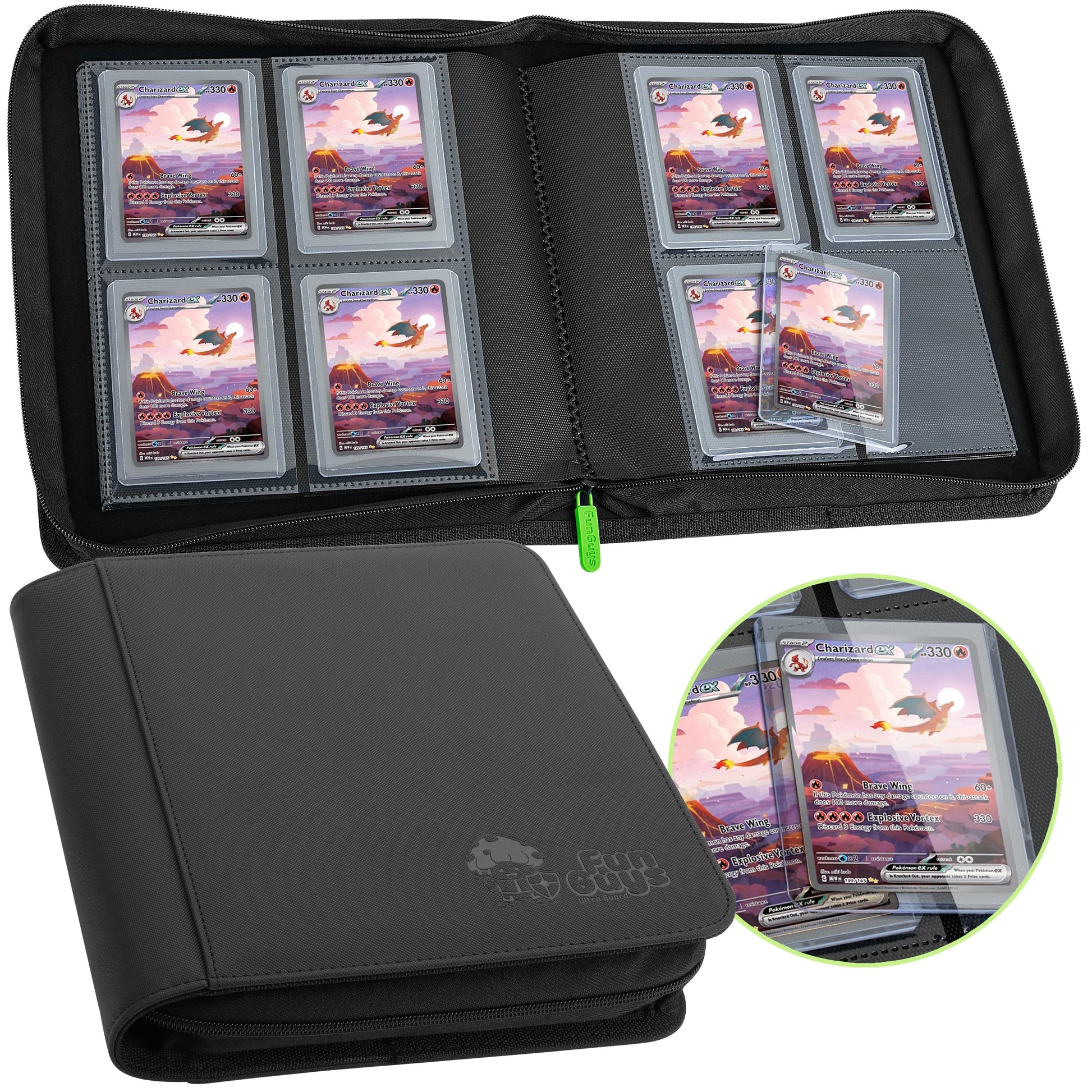 Each binder includes 4-pocket pages with 128 side-loading pockets, providing ample space for your collection. The binder is perfect for keeping your cards safe and organized, whether you're a casual collector or a competitive player.